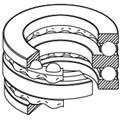 NSK的推力球軸承采用高速運轉(zhuǎn)時可承受推力載荷的設(shè)計,由帶有球滾動的滾道溝的墊圈狀套圈構(gòu)成。由于套圈為座墊形,因此,推力球軸承被分為平底座墊型和調(diào)心球面座墊型兩種類型。另外,這種軸承可承受軸向載荷,但不能承受徑向載荷。