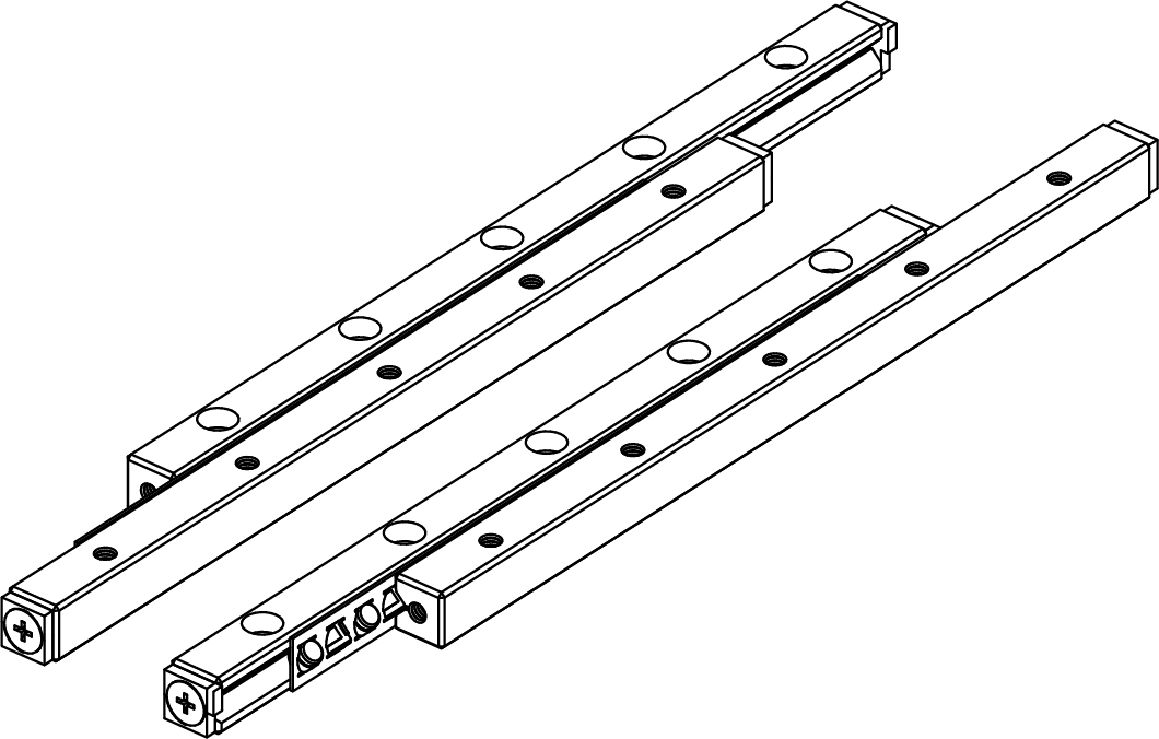通過組裝兩排平行的 "VRG型",可以承受來自四個方向的載荷。裝配時,滾柱通過間隙調(diào)整螺栓施加預(yù)壓,因此可以作為高剛性的直線運動導(dǎo)向。此外,在保持架中形成的滾柱(油庫)與滾子有表面接觸,因此能更好地保持潤滑劑,從而減少金屬與金屬之間的磨損,延長使用壽命。