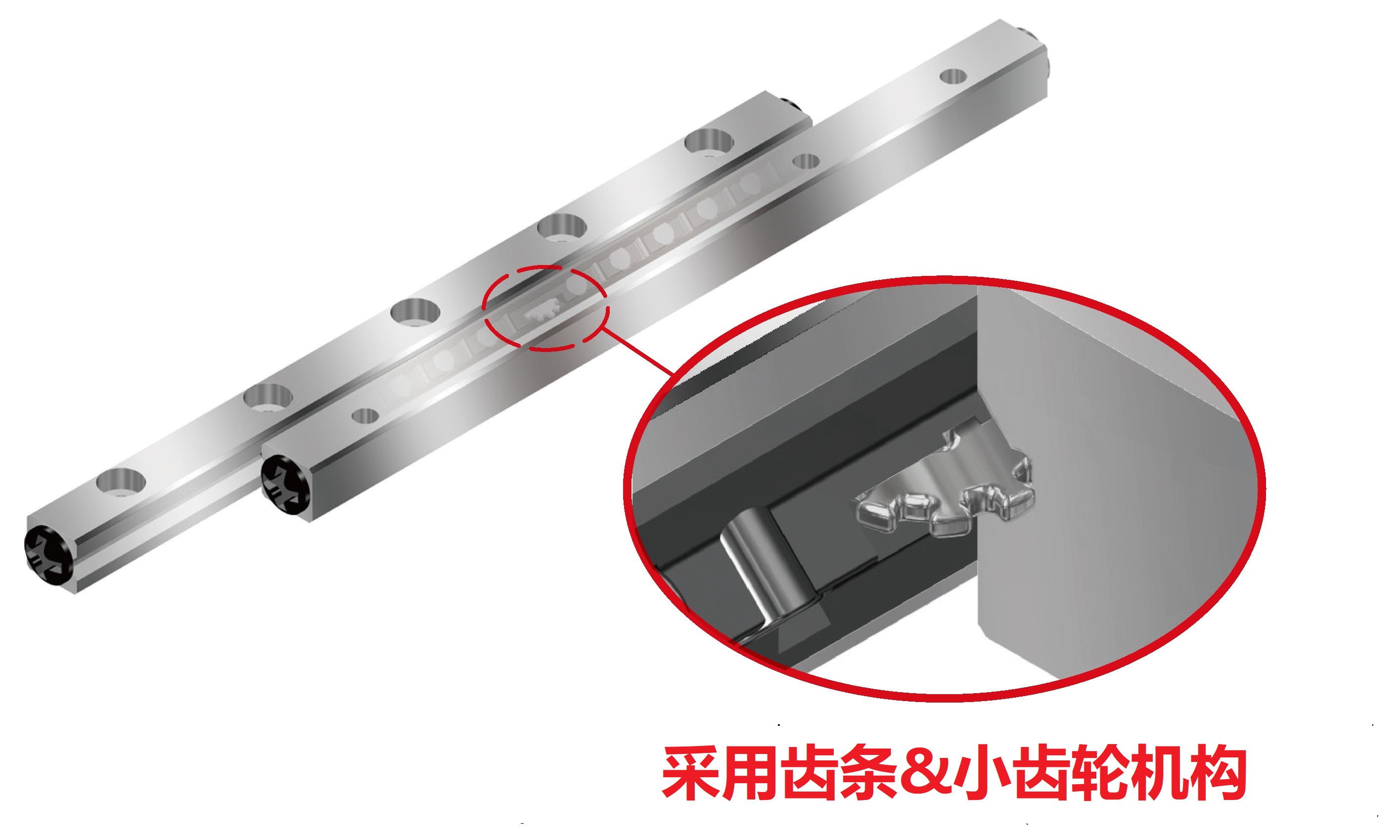 使用THK的特有齒條&小齒輪機構(gòu)防止保持架錯位實現(xiàn)穩(wěn)定的運動。