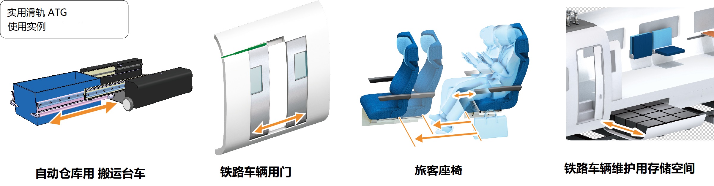 “ATG”通過實(shí)現(xiàn)高負(fù)荷容量和耐久性,旨在向需要實(shí)用級別的物流和鐵路領(lǐng)域推廣,特別是在自動倉庫的搬運(yùn)臺車的取出部分,鐵路車輛門的打開和關(guān)閉部分,飛機(jī)座椅的滑動機(jī)構(gòu)等都有很大的使用前景。