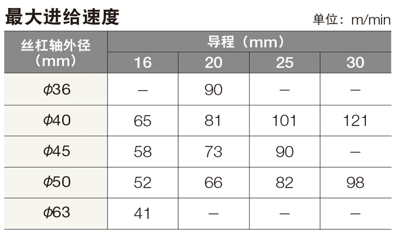 最大進給速度為121m/min(BSM4030-6時)