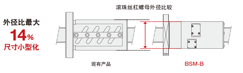 BSM-B的螺母外徑更加細長,有助于節省空間。