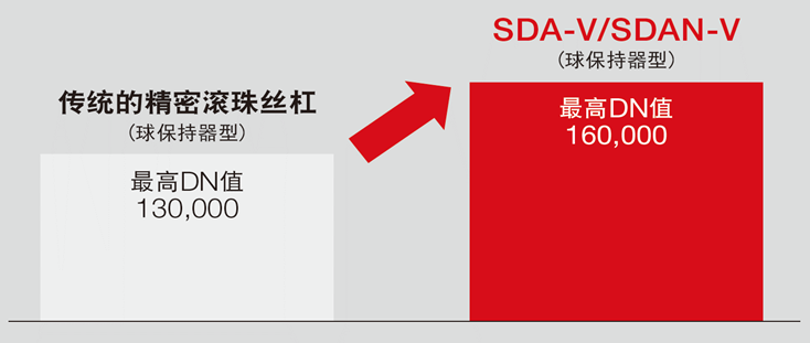 球保持器型高速小型滾珠絲杠「SDA-V/SDAN-V」實現了裝置的高速化及小型化。